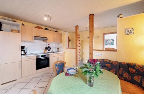 The holiday apartment Ferienwohnung Heike Schreiber with step-free access and interior in Sasbachwalden is the ideal accommodation for a relaxing holiday with a mountain view. The 50 m² property consists of a living room with a sofa bed for 2 people, a well-equipped kitchen, 1 bedroom and 1 bathroom and can therefore accommodate 4 people. Additional amenities include Wi-Fi, a TV, a fan as well as children's books and toys. In addition, a table tennis table is available for your use. A baby cot and a high chair are also available. This vacation rental offers a private outdoor area with a garden, open terrace, and barbecue amenities.
