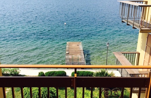 apartment located in front of the lake, a few steps from the town of Casteletto di brenzone, with a green area on the beach and private pier, private parking. Kitchen equipped with appliances and dishes, bedrooms with linen, main bathroom and service bathroom with washing machine. Panoramic lake balcony with relaxation sofas where you can have breakfast or a romantic aperitif watching the sunset. Cycle track that connects the towns of BRENZONE and MALCESINE over 15 km long.