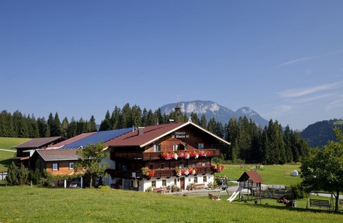 The Alpen Rose Apartment is nestled in a traditional apartment, furnished in typical Austrian décor. Complete with all comforts, on a height of 800 m in the midst of the green countryside, some 3 km away from the village of Hopfgarten. The owners live on the farm with their animals including cows, calves, chickens, roosters, pigs, cats, ducks and a dog. You can easily purchase organic products such as bread, cheese, milk, eggs, schnapps, bacon, jam, and apple juice. In the winter, the area around Hopfgarten offers many things to enjoy. Just a few km away is the Wilder Kaiser ski area with some 130 km of ski runs and trails. The region simply invites cross-country skiing, hiking, tobogganing, and farm wagon rides. Located between the towns of Wörgl and Kitzbühel, it is the ideal point of departure for day trips to Innsbruck, Salzburg, or the Krimmler waterfalls. In the summer, the area offers fishing, horseback riding, paragliding, swimming and bowling.
