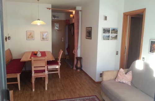 the flat is about 50 sq m and consisting of two bedrooms and a living room (satellite TV + radio), a kitchenette and shower / toilet; at the same time there is a big balcony with a view of the Sella Group. The apartment is just 250 meters from the lifts and slopes. A reserved parking space is in front of the house. During your stay with us, as ski slopes, shops, restaurants, banks, children's playgrounds, bus stops and all other facilities are comfortable and in no time within walking distance.