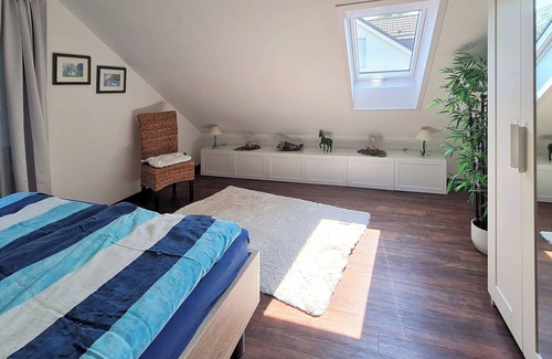 The modernly furnished apartment in Hildesheim Itzum is located opposite the Marienburg domain culture campus, and the main building of Hildesheim University is 2.6 km away. The city center of Hildesheim, 6 km away, can be reached by car and city bus or you can take the beautiful cycle and hiking trail through the Innerstetal and the Hildesheim parks. The exhibition center in Hanover is 34 km away, Hanover-Langenhagen Airport 56 km via the autobahn.