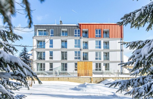 Modern apartment block "Dům Sedmnácti Bylin", 4 storeys, renovated in 2024. On the outskirts Abertamy, 500 m from the skiing area. In the complex: sauna (extra). Lift, central heating system, laundry. Storeroom available. Parking at the house. Grocery 2.5 km, restaurant 2.5 km, café 2.5 km, bus stop "Abertamy, náměstí" 170 m, railway station "Pernink" 4 km, outdoor swimming pool 10 km. Walking paths from the house, cycle lane 10 m, ski lift, slopes, ski rental 500 m, cross country ski track 100 m, children's playground 500 m. Nearby attractions: Krušnohorská lyžařská magistrála, Stezka Českem, Ježíškova cesta, Boží Dar, Aqua Centre Agricola/Jáchymov 10 km, Oberwiesetnhal (DE) 13 km, Karlovy Vary 20 km, Annaberg-Buchholz (DE) 35 km. Well-known ski regions can easily be reached: Abertamy - Plešivec 500 m, Boží Dar - Neklid - Klínovec 10 km, Fichtelberg 13 km.