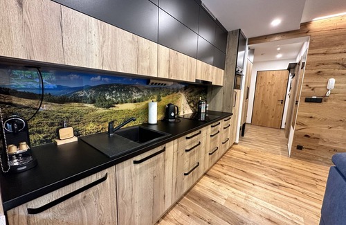 Modern, luxurious residence "Máj", 3 storeys, detached, renovated in 2023. In the centre of Pec pod Sněžkou, 100 m from the edge of the forest, 1.3 km from the skiing area, 10 m from the river. In the house: storage room for skis, central heating system. Parking at the house. Shop 60 m, grocery 200 m, restaurant 60 m, bar, café 100 m, bicycle rental 500 m, pub garden 60 m, bus stop "Pec pod Sněžkou" 300 m, indoor swimming pool 500 m. Sports centre 500 m, walking paths from the house, cycle lane 20 m, ski lift 1.3 km, chair lift 1.3 km, skisport facilities 1.3 km, ski rental 60 m, ski bus stop 200 m, ski school 1.3 km, children's ski school 1.3 km, cross country ski track 150 m, children's playground 400 m. Nearby attractions: Relaxpark, bobová dráha 400 m, Sněžka (lanovka) 1.2 km, Obří důl, Modrý důl, vodopády 3 km, Malá Úpa 8 km, Janské Lázně 15 km, Vrchlabí, Trutnov 30 km. Well-known ski regions can easily be reached: Pec pod Sněžkou – Černá Hora 1.3 km, Velká Úpa 2.5 km, Janské Lázně 15 km. Well-known lakes can easily be reached: Dolce 25 km. Hiking paths: Krkonošský národní park. Groups of teenagers on request only. The owner does not accept any youth groups.