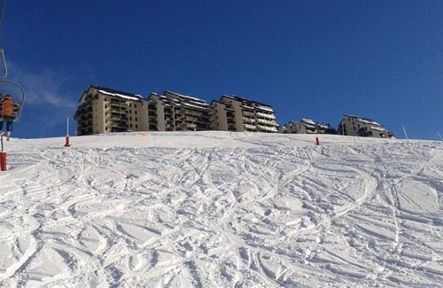 SUPERBAGNERES "RESIDENCE LES CRABIOULES" 2-room apartment for 4 people of 28 m2, at the foot of the slopes, located on the 2nd floor without lift facing north-east - 2 large balconies. This apartment has a north-west facing living room with mountain and path view, a sofa bed for two people in 140, an equipped kitchenette (with coffee maker, toaster and microwave), a bathroom with shower and separate wc, a bedroom with a 140 bed (new bedding) and large wardrobe. Television. Ski cellar n° 6. Pets not allowed Floating floors. Public car park nearby. Unless stated, services such as cleaning, bed linen, towels etc. are not included in the price of this rental. If pets are allowed (information in the advertisement), charges may be applicable. Only equipment mentioned in this advertisement are present. Equipment not mentioned are not considered to be present.