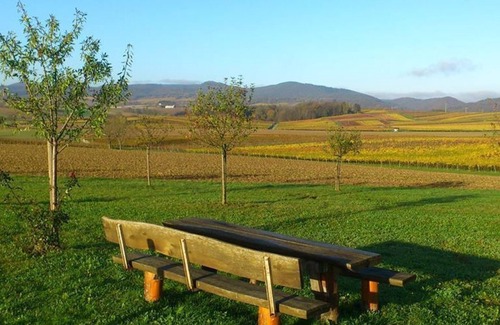 enjoy space, absolute peace and nature on the eichenhof at kapellen-drusweiler The Aussiedlerhof is located in a tranquil valley outside the village and yet in close proximity to Bad Bergzabern. In 5 minutes you reach the city center of Bad Bergzabern or the Südpfalz Therme - and still experience the tranquility of the countryside. Completely rebuilt in 1996, the apartments and the large outdoor area are maintained by family job with great attention to detail. You can expect a friendly, clean and familiar environment. The playground with trampoline especially appeals to families with children, but also seniors, cyclists and motorcyclists feel at home with us. Parking facilities for bicycles, motorcycles and strollers, many children's vehicles, children's equipment, barbecue, Flammkuchenofen and much more is available. We offer a bread delivery service as well as our own agricultural products (wine, juice, jam, eggs, fruit ...). Due to several apartments and a common kitchen, the Eichenhof is ideal for families and groups traveling together. Talk to us, we will be happy to make you an individual arrangement for your stay..