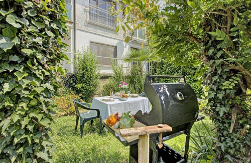 with tranquil views of lake lugano, this ground-floor, one-bedroom retreat for 2 is ideal for kicking back and enjoying a peaceful vacation with loved ones The holiday rental is equipped with a private open-air dining terrace and BBQ for you to enjoy relaxing intimate moments together. Outside, in the residential complex, guests also have access to a communal indoor pool and a garden.