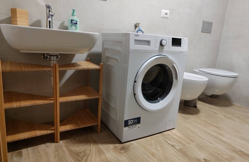 the kitchen is equipped with an oven, a stovetop, and a refrigerator, as well as an electric kettle, a microwave, and cookware Enjoy the free WiFi and TV. Bathroom amenities include a hair dryer, a bidet, and towels. And you won't have to pack extra clothes, because you'll also have access to laundry facilities. Other amenities at this 2-bedroom, 1-bathroom rental include bed sheets, a desk, an ironing board, and a dining table.