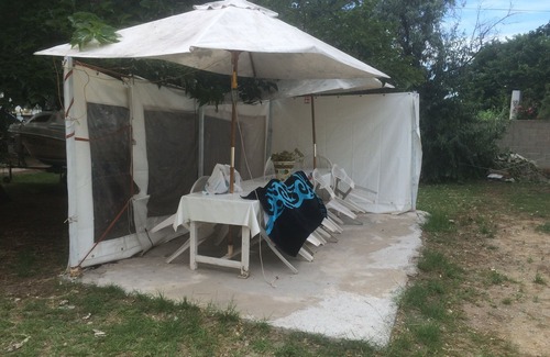 terrace with large 20m² table that can accommodate 20 people under shade