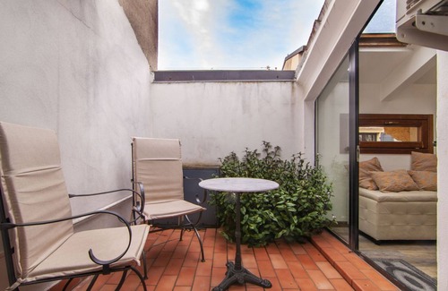 the strong point of the apartment is certainly the large terrace, furnished with a table and chairs, where you can enjoy an excellent aperitif while enjoying the view over the streets of the centre