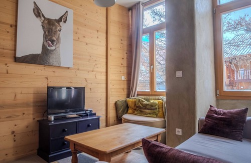 enjoy this charming ground-floor apartment in the heart of the peaceful village of huez, on a pedestrian street The open-plan living space is ideal for sharing convivial moments.