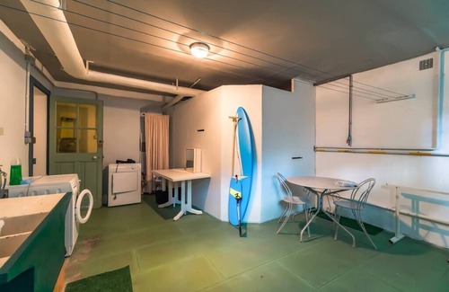 vous trouverez au sous-sol une pièce lumineuse et aérée elle est équipée d’une machine à laver et d’un sèche linge ainsi que d’un fil à linge