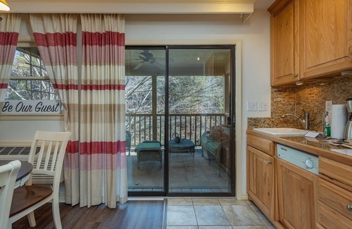 Open the door and surround yourself with a rich mountain experience. This upper-end villa is furnished with hickory wood, cozy quilts, antiques, and vintage fern prints to make your stay a memorable one. Step outside and enjoy the trees on the fully furnished porch complete with rattan seating, ceiling fan, flowering plants, and ivy lad trellis. This unit sleeps two-four, with a king size bed and a queen sleeper sofa. Inside the unit you will find a chandelier lit dining table for four. The kitchenette includes granite counter-tops, ceramic cook-top, microwave/convection oven, refrigerator, and dishwasher. Additional amenities include 150 channel satellite TV.This property is non-smoking and doesn't allow pets.