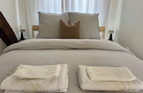 this 1-bedroom, 1-bathroom rental features a living room and a dining area Enjoy the free WiFi and Smart TV. Bathroom amenities include a hair dryer, towels, and toilet paper. Prepare a home-cooked meal in the kitchen, complete with an oven, a stovetop, and a refrigerator, as well as a coffee maker, an electric kettle, and a microwave. Other amenities include bed sheets, an ironing board, heating, and a dining table.