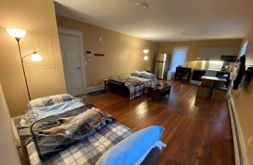 the building is a historical landmark known as the dog built in 1903 with modern electrical, plumbing, heating and cooling This is a multi room apartment, well lit apartment with a living room and a bedroom. The boat slip is across the street and can accommodate up to a 20ft boat. We have completely renovated the building and furnished the units with modern appliances. Come work remote, enjoy the lake, relax and have fun.