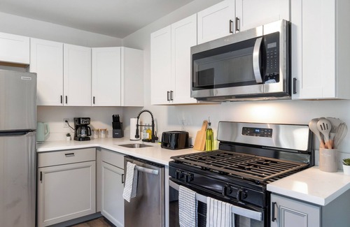newly renovated 2 bed/1 bath with dedicated office space unit minutes away from downtown Fully equipped kitchen w/ luxury stainless steel appliances, smart TV, in-unit washer/dryer, and much more makes this the perfect place to stay with family & friends.