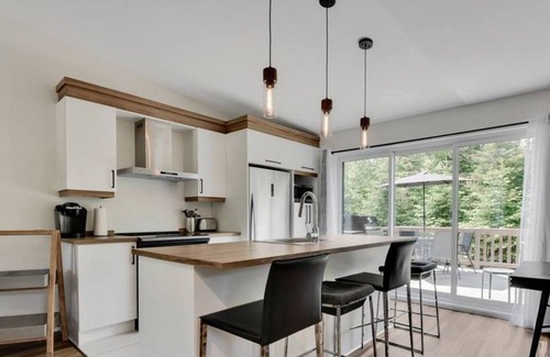 discover chalet arès, a welcoming retreat located in the heart of domaine au grand portneuf Designed to accommodate up to 5 guests, this chalet features 2 comfortable bedrooms, a modern bathroom, and a convenient powder room. Perfect for family getaways or trips with friends, it offers all the necessary comfort in a peaceful and lush setting.