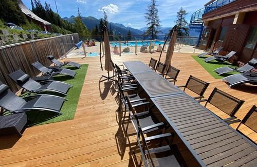 at the foot of the ski slopes and the resort arc 1800, one of the largest ski resorts in france, 200m walk from shops You can enjoy the summer many activities such as swimming pool, golf, tennis, climbing, tree climbing, mountain biking, paragliding, canyoning, rafting, quad, etc.