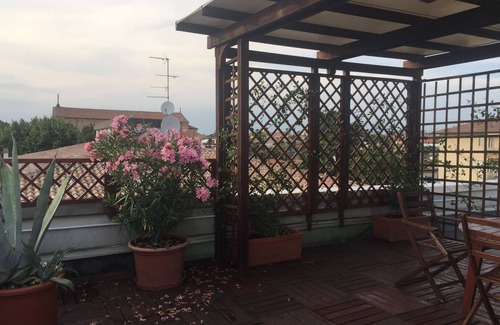 the apartment is located on the fourth floor of a condominium In the rooftop, there is a large terrace completely available furnished with table, deck chairs and plants. There are 3 bedrooms (one with a double bed, one with 2 singles beds and the last one with a sofa bed). There is a kitchen with all the stuff you need (pots, kettle, toaster, dishwasher, microwave oven) a living room with a TV and free wi-fi. One bathroom with a bath, shower, and a washing machine.