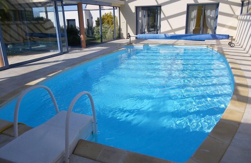 one covered and heated pool in a permanent structure measuring 100m² with aluminium bay windows