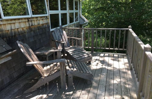 surrounded by woods and fields, with a path to our private ocean shore, our deliciously cozy apartment is perfect for couples of all ages It is situated in five acres of woods with several hundred feet of shoreline and is located about 100 feet from the main house. A footpath leads to the shore with views of the islands and passing sailboats, and where wind and tide bring sometimes subtle, sometimes dramatic changes, from day to day.