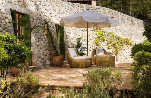 Built in traditional Mallorcan style, with exposed beam ceilings and terracotta tiled floors, it has been sympathetically built into the landscape and has panoramic sea and mountain views. The property has a private heated swimming pool (15 x 6 metres), kitchen, living room and dining area and comfortably sleeps 10 adults in 5 en-suite bedrooms.