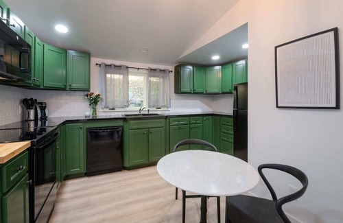 Enjoy the modern comforts in a recently renovated 1800s farmhouse less than .5 miles from downtown Peterborough! A perfect space for small families or intimate gatherings, stay in and relax in one of the many cozy spaces of this unit or spend the day out in and around the area knowing you’ve got a comfortable and inviting space to return to afterwards. This rental features two bedrooms on the second floor with a king bed and two twin beds, and a full bathroom with walk-in shower and washer/dryer. The ground floor has a spacious living room, dedicated dining room, expansive fully equipped kitchen, and a back den with a pull out sofa and desk area.