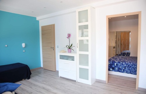 On a villa on the hills surrounding Nice, we host a group of up to 4 guests in a independent, freshly renovated studio apartment with two separate rooms, each one with its own bathroom. We offer B&B treatment (breakfast, bed linings & towels supplied, room cleaning).