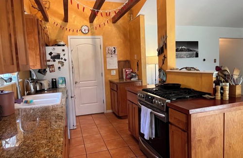 it's a great space to end and begin a day with a wonderful yard to relax in, fully stocked kitchen, a relaxing living room and comfortable beds