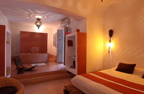 Zen, calm space on entering the door of Riad O23, built around a central courtyard with bubbling fountain, indoor jacuzzi, private hammam and magnificent roof terrace. Minutes from the bustling souks of Marrakech but a haven of peace and tranquility with 8 bedrooms and 8 bathrooms and staff on hand for preparation of meals and housekeeping..