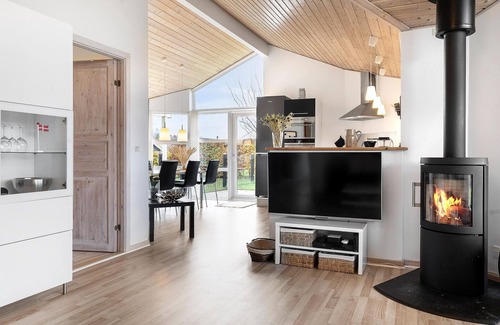 welcome to your vacation home, where you can fully relax in the elegant ambience In the stylish, open kitchen, the whole family can cook together and discuss the day's vacation plans. Spend cozy hours in the living room. Enjoy a refreshing drink and play card or board games or immerse yourself in a good book. The wood-burning stove adds to the cozy atmosphere. Outside, the spacious terrace is waiting for you to indulge yourself to the full. You can also enjoy a barbecue together in the open air. The adjacent soccer pitch is the ideal place for a small soccer tournament. Score the vacation goal of the month here.