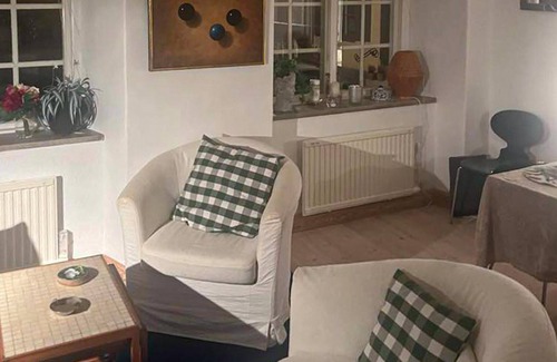 nestled in a small side street and surrounded by blooming roses, this house offers an ideal blend of history and comfort Step into the living area with bright walls and cosy furnishings. Relax on the sofa or enjoy a good book in the comfortable armchair. Use the dining area with a view of the old rooftops of the city for meals together. The interior combines traditional elements with modern accents and promises relaxing evenings after a day full of adventures.