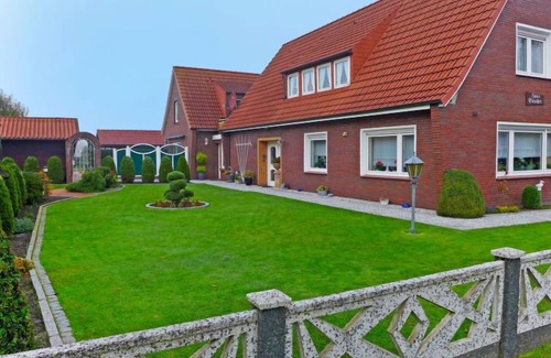 Apartment house "Büscher". In the resort, 600 m from the centre, 18 km from the sea, 2 km from the lake, 18 km from the beach. For shared use: large garden. Arbour, barbecue. In the house: storage room for bicycles, central heating system. Available: bicycles (6), children's bicycles (1). Breakfast possible (extra). Shop 500 m, restaurant 600 m, bakery 500 m, café 600 m, bus stop 600 m, railway station "Norden" 13 km, sandy beach 18 km, outdoor swimming pool 4 km, indoor swimming pool 4 km, bathing lake "Kiessee Grossheide" 2 km. Golf course (18 hole) 7 km, surf school 18 km. Nearby attractions: Lütetsburger Schlosspark 7 km.