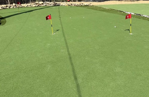 Ultimate home for Bachelor Bachelorette. That includes a full size PickleBall Court, a 2,000 sqft country club putting green with pitching pads and sand trap, poker room option, hot tub and lighted patio. Tesla available at home via Turo. (dont rent a car- uber from airport)