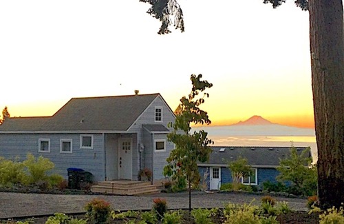 Welcome to Bainbridge Island! We are happy to share our cozy little island cottage with visitors looking for a change of scenery or a longer vacation. Just a beautiful 35 minute ferry ride from downtown Seattle and a short 3 mile drive or cab ride from the Bainbridge Ferry terminal, leave your mainland worries behind and come stay in this quaint, well-cared-for 1930s farmer's cottage next door to our home. The views of Mount Rainier and Puget Sound from all the rooms in the house are soothing and spectacular. The bed is a double (full) bed (this is smaller than a queen) due to room size restrictions. There is also a full (double) sofa bed.