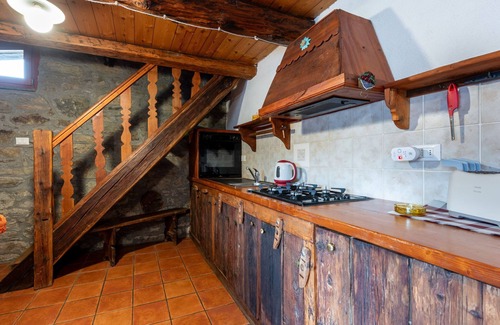 "baita del celtico 2", 3-room apartment 40 m2 on 2 levels, on the ground floor Rustic and wooden furniture furnishings: living/dining room with Scandinavian wood stove, dining table and TV. 1 double bedroom. Kitchenette (oven, 4 gas rings, toaster, kettle, electric coffee machine). Shower/bidet/WC. Heating. Heating available only from 01.10. to 30.04. Upper floor: (ladder) open mezzanine with sloping ceilings with 1 double bed. Small garden. Terrace furniture, deck chairs. Facilities: Internet (WiFi, free). Please note: maximum 1 pet/ dog allowed. Smoke alarm, fire extinguisher. "The garden is located at the back of the house about 20 meters away". it007006c2wiv57i7m