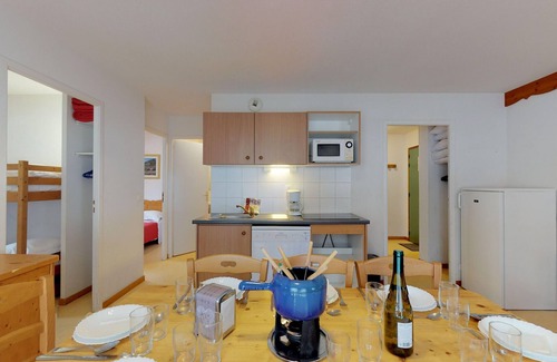BALCONS – APARTMENT G 025Sleep in this pleasant apartment in the resort of Termignon, France,The "Les Balcons de la Vanoise" residence is close to the village, shops and restaurants, and can accommodate up to 8 people. CLOSE TO THE CABLE CARS - PARKING – TELEVISION - DISHWASHER---------------------------------------------- YOUR ACCOMMODATION Comfortable 3* apartment of 46 m2 on the ground floor. Living room with television. Open kitchen equipped with fridge and freezer, dishwasher, microwave, coffee maker, kettle and toaster. - Living room: 1x double sofa bed 140*190- Bedroom 1: 1x double bed 140*190- Bedroom 2: 2x single bunk beds 80*190- Bedroom 3: 2x single beds glued 80*190- Bathroom: 1x shower with WC, 1x with bath, 1x WC separate- Outside: balcony - Laundry: available in the building (extra charge) - Ski room: available in the building - Parking: 1x outside parking space according to availability - Pets: welcome You are in the Balcons de la Vanoise residence, which enjoys an ideal location. Situated in the center of Termignon, this ski-in/ski-out residence offers a living space that is both cosy and modern. The residence comprises several buildings with elevators. - Ski slopes: 50m- Shops: 200m- Restaurant: 50m ---------------------------------------------- WHAT DO YOU NEED TO PAY EXTRA FOR A SMOOTH STAY*? > Tourist tax (price depends on the region) > Deposit blocked during your stay and released at the latest 1 month after departure *these services are mandatory and come at an additional cost ---------------------------------------------- YOUR ALPVISION BENEFITS + Find out about discounts with our partners on our Benefits page + Numerous discounts with our partners: up to 50% off your equipment hire, your ski lessons, your purchases in the shop and much more... find out more on our Benefits page ---------------------------------------------- OPTIONAL SERVICES FOR YOUR COMFORT (ADDITIONAL CHARGE) > Bed linen & towels (price depends on number of guests) > Final cleaning (price depends on the accommodation) > Take additional bed linen and towels and/or renew them during your stay > Pet fee (Tax) > Treat yourself during your holiday! Gourmet basket, baby equipment, late departure... Contact us for more information, we have what you need to make your stay even more special. ---------------------------------------------- ALPVISION RESIDENCES Creator of authentic stays in the Swiss and French Alps for over 20 years. Let yourself be pampered by our talents for an unforgettable holiday and live new memories with us! Welcome Home, Your Alpvision team.