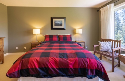 the kitchen is fully equipped with pots, pans, dishes, appliances, spices, condiments and coffee supplies The barbecue is located on the deck just outside the kitchen door. The Baldy Mountain Lodge is perfect for couples and young families and includes a full playroom with toys and a well stocked cupboard of board games for adults. Three large bedrooms with a bonus room with pull-out sofa, the Baldy Mountain Lodge is perfect for 2 families.