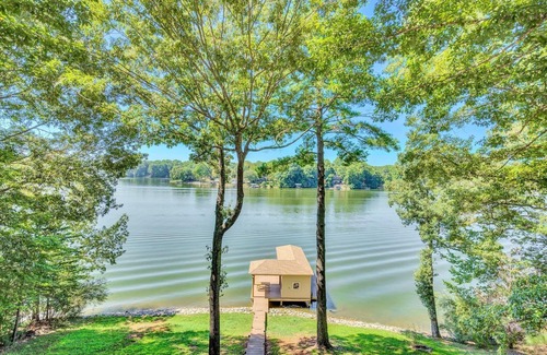 this pet friendly home features a great room with vaulted ceilings overlooking the water plus large screen tv, a whirlpool tub in the master bath, a brand new dock with floater and new decking It is the perfect place for swimming and jet skiing! Enjoy the amazing dock for dining, entertaining or just reading a book. From the moment you step into the house you will be delighted by the great layout, wide water views and private feel. The main level has 2 bedrooms and 2 baths. The master bedroom has a king size bed with its own master bath plus TV and the second bedroom has a queen size bed plus TV. The kitchen and dining room area overlook wide water views of the main channel! In the spacious lower level there is plenty of room for everyone to spread out to enjoy the family room with wet bar and large flat screen TV plus there are 2 bedrooms downstairs; one with a queen plus TV and the other has 2 twins. They share a large full bathroom. This home is on the main channel and boasts wide water views, so you have several wonderful choices to take in those views...the brand new spacious dock with guest friendly dock house including small fridge and microwave or hang out on one of the spacious back decks. the owner is providing 2 kayaks and 1 paddleboard for guests to use, as well! it really doesn't matter where you are in this home because you are going to love it all!