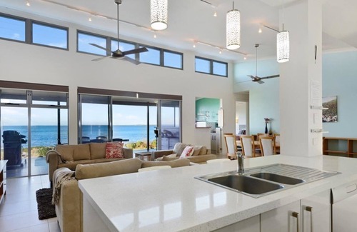 property details: 3 bedrooms - king, queen, 2 x bunks Sleeps 8; Quilts and pillows provided – BYO sheets, pillowcases, towels, bathmats & tea-towels OR optional linen hire available through Country Getaways office (including beds made up). Bathroom with bath, separate shower & toilet; Additional toilet. Reverse cycle split system air-conditioning in lounge room; Ceiling fans in living area; Ceiling fans in king & queen bedrooms; Pedestal fan in bunk bedroom. Open plan living area comprising kitchen, dining & lounge. Large television with USB & HDMI port in lounge room; DVD player; Radio; Books; WiFi for guests use. Fully equipped kitchen with electric stove, microwave, dishwasher, and large fridge with freezer on top; Nespresso coffee machine (guests need to bring compatible pods to use " disc pods"; Rain water. Outdoor kitchen / bar with bar fridge, sink, storage and bar stool seating. Front load washing machine; Iron; Ironing Board. Undercover front deck with direct beach access; Ceiling fan on front deck; Outdoor seating & dining; Hooded gas barbecue. Unfenced yard; Lawned area at front of house; Outdoor shower. Fish cleaning sink; Crab cooking facilities. No guest access to garage. Off-street parking for up to 2 vehicles. Pets by arrangement only ($100 refundable bond applies per pet) - inside pets accepted.