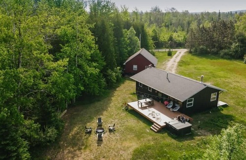 this private slice of heaven has all the rustic up north feels, with just the right touch of urban chic Adjacent to 100s of acres of state land, this secluded spot has everything you need to unwind, and let go. Enjoy the hot tub, fire pit and outdoor deck seating. Bask in glorious solitude among the trees and under the stars.