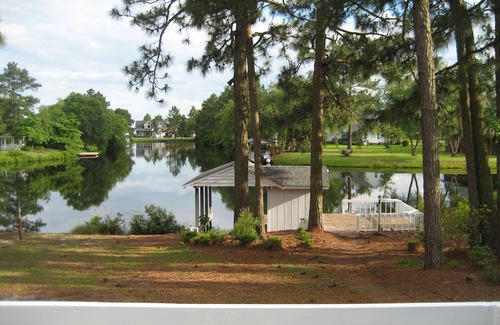 Beautiful Remodeled House on the water, 2800sf with 3BR/4BA, sleeps 12 in a gated community. Rec Room with Pool Table, 4 SeaterTable for cards and games, full bath, and futon with 2 huge windows overlooking the canal. Kitchen with granite counters, SS Appliances and eat at bar and dining room. Master Bedroom Downstairs with queen bed, New Master Bath with tile shower and garden tub, Laundry Room with w/d and another full bath, 2 sitting rooms, one has a fireplace and a sofa bed, the other has built in bookcases. 2 Bedrooms and full bath upstairs, One bedroom has 2 queen beds, another bedroom has 2 full beds. TV's in one sitting room and in all the bedrooms, ceiling fans in all bedrooms, family room, sun room and rec room. Huge deck with 2 tables and umbrellas, gas grill provided, screened porch and brick paver patio. Sheets and towels provided. Brick paver walkway to the Boat Dock with 6 Adirondack chairs. Bring your boat, jet skis, and your golf cart. As a guest you will enjoy Basketball Court, Tennis Court, Volleyball net, Walking Trails, Bike Trails, Playground, Beach Club and Cabana with large sandy beach. Groceries, shopping and restaurants nearby. Take a day trip to the beach, Carolina and Wrightsville beach less than an hour, Myrtle beach is about 90 minutes. white lake waterpark is 10 minutes down the road, white lake has an arcade and rides in the summer and ice cream!