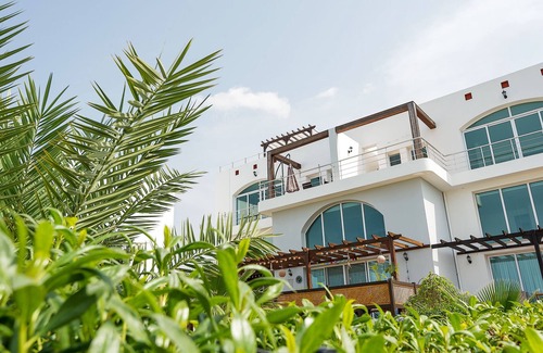 In this pristine modernly styled yet cozy and comfortable penthouse apartment, you are home away from home. With a large living room area bathed in natural light, you and your family can relax on the large sofa feasting your eyes on a spectacular sea view. Everything is at your fingertips. On the expansive roof top terrace, you can soak up some sun for a beautiful tan or enjoy a romantic meal while watching ships crossing the Mediterranean straits. Come and enjoy a magical escape.
