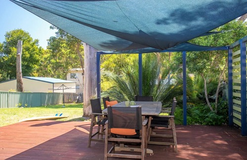 beach bangalow opens up onto a spacious rear deck overlooking the fenced backyard Perfect for entertaining with gas BBQ and outdoor seating for eight. We invite you to bring your four legged friends to enjoy your time away with you. A kennel is provided along with a fully fenced backyard.