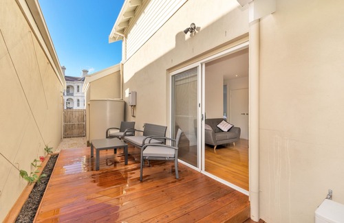 the front balcony overlooking the beautiful royal hotel is perfect for watching life go by or cooking up a storm with the weber bbq whilst sipping a glass of bubbly