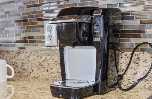 step into a spacious, open-concept layout featuring a comfortable living area with seating for six and a 50” smart tv For those cozy nights in, the kitchen offers everything needed for a homemade meal, including brand new modern appliances, granite countertops, a full stove/oven, microwave range, coffee maker drip and k-pod, toaster, blender, and all essential cookware. Gather around the 6-person formal dining table for a meal with ocean views as the perfect backdrop and seat 2 at the kitchen bar.
