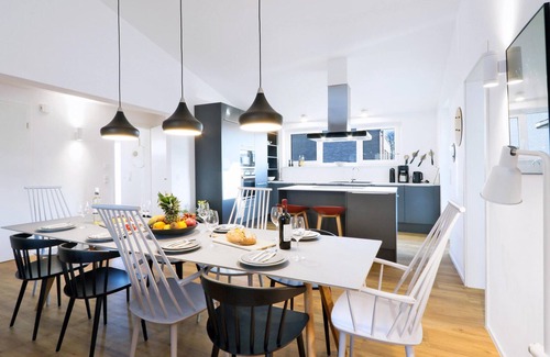 welcome to your holiday home, which offers you as a family with children or as a group of friends a cosy, homely ambience in scandinavian style Thanks to the private indoor pool and sauna, a touch of luxury wafts through this house, whose living and dining area on the first floor welcomes you thanks to the open gallery with loft character. The open-plan kitchen invites you to cook and linger, while you can always find a sunny spot on the two terraces Up to 10 guests will always find enough privacy here, thanks to 5 bedrooms and 4 bathrooms. The furnishings in Scandinavian design are of high quality throughout and leave nothing to be desired.