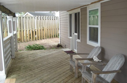 King bedroom couples retreat. Relax in the jetted Jacuzzi tub. Or enjoy a private game of pool or foosball. Tucked away on a quiet cul-de-sac with it’s own private entrance, this retreat is a quick 10 minute walk to the beach. The screened-in outdoor area offers a living area which will let you relax to the soothing sounds of a Koi fish pond and also includes a kitchenette with microwave, toaster oven, blender, 2 burner hot plate, refrigerator, and coffee maker. Enjoy the outdoor shower after a day at the beach and the summer heat. Conveniently located close to all that the Outer Banks has to offer - restaurants, bars, shops and grocery stores. There is also bike path close by for those who would like to explore this beautiful area on bicycles..