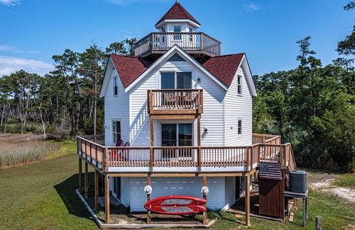 nestled on little oyster creek in the charming small town of white stone, is beacon bay getaway This newly renovated, lighthouse style home is situated on 3 private acres and has 3 water views: the Creek, the Chesapeake Bay and the Rappahannock River all which can be viewed from the new wrap @ deck and top observation lookout. The private dock is great for launching one of our kayaks or SUP or night stargazing. Bring your fishing rods to catch Croaker or use our crab pot for local blue crabs. Follow us on Instagram: @beaconbaygetaway. new in 2025: starlink high speed internet!