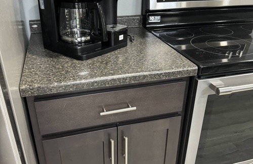 bearly awake cabin boasts 2 bedrooms, 2 full baths, combined open kitchen, dining and living space, laundry with washer and dryer, and picturesque views from every space in the cabin Bedroom 1 offers a full over full bunk bed with a pull-out twin trundle, TV, closet, and attached full bathroom, also accessible through the laundry room situated off of the main living space. Bedroom 2 has a queen bed, private full bath, TV, and closet. Kitchen includes refrigerator, dishwasher, microwave, toaster, coffee pot, glassware, dining, cooking and silverware sets, and table that seats 6. Living space has a sofa that pulls out into a queen bed, love seat, chair, and TV. All have sliding glass doors with amazing views of the great outdoors and the Clarion River that lead to a covered patio with chairs. Beyond the patio is a custom-made fire ring with plenty of seating and a covered pavilion with electric, both situated on the banks of the Clarion River. Cable TV, Wi-Fi, heat and air conditioning. Cut firewood is located on the property. It is available for purchase on a consumption basis and honor system during rental.