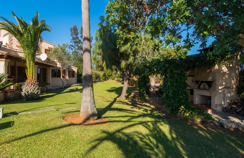 the gardens and pool at the house are really private and relaxing - with lawns surrounded by tall trees, shrubs and palms The swimming pool curves around in a crescent shape with palm trees for shade and a sun-terrace with loungers. For 2010, there is a children's play area (swings, slides, playhouse) plus Sand pit. There's a great L-shaped covered terrace too with a dining table, and a separate barbecue casita, bread oven and cooking area..